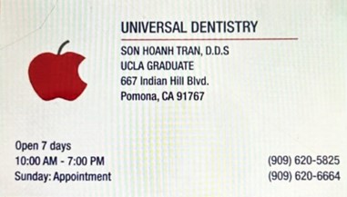 Nhưng hôm nay con gái đã chở mình đến phòng răng của Nha Sĩ Trần Hoành Sơn, D.D.S. (Doctor of Dental Surgery). Được biết ông tốt nghiệp từ Đại Học nổi tiếng UCLA nên sự lo âu bước đầu cũng giảm bớt.
